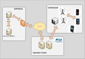 En las dos modalidades, los servidores BES o BIS lo que hacen es establecer una comunicación segura con los servidores NOC de RIM, que son el nodo principal donde están registrados todos los dispositivos móviles de Blackberry y los servidores BES/BIS donde estan registrados esos dispositivos.